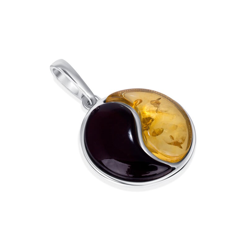 Silberner Bernsteinanhänger mit dem Symbol Yin Yang