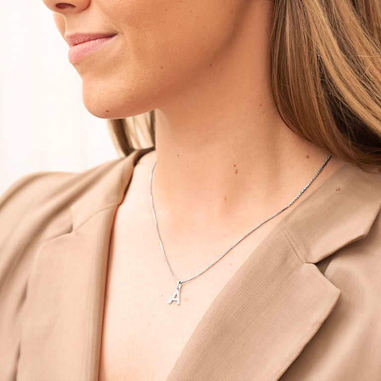 Silberner Buchstaben-Anhänger mit Lab Grown Diamanten Letra