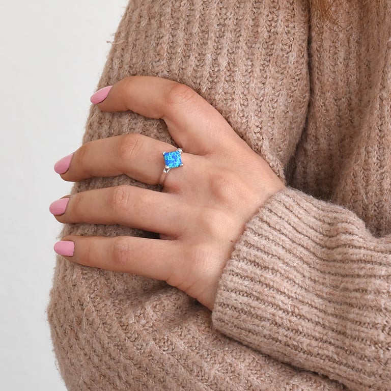 • außergewöhnlicher silberner Ring mit einem quadratischen Opal