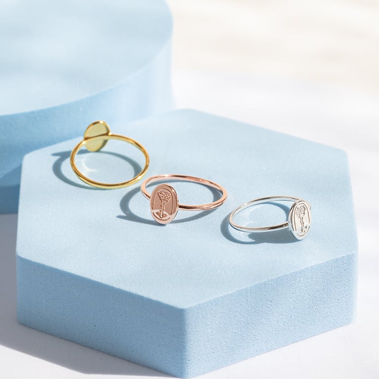 Silberner ovaler Ring mit der Gravur der Rose aus dem Kleinen Prinz