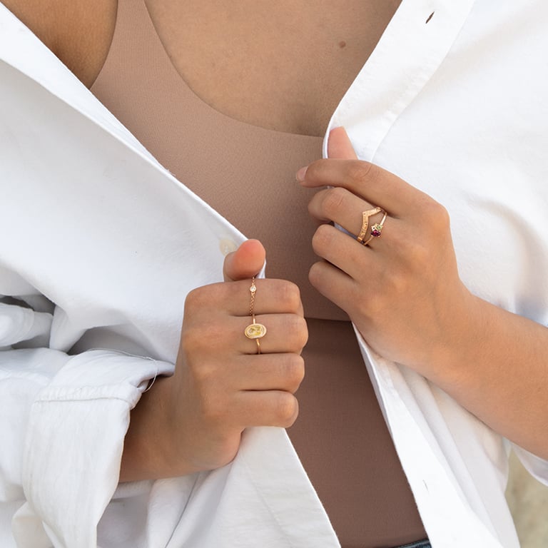 Wir stellen Schmuck aus im Labor gezüchteten Diamanten und recyceltem Gold, Silber oder Platin her. Wir wollen damit ein Zeichen setzen, dass Ethik und Nachhaltigkeit mit Luxus Hand in Hand gehen können.