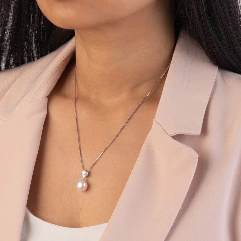 • der bezaubernde Glanz des gesamten Anhängers wird durch eine Süßwasserperle in Weiß akzentuiert
