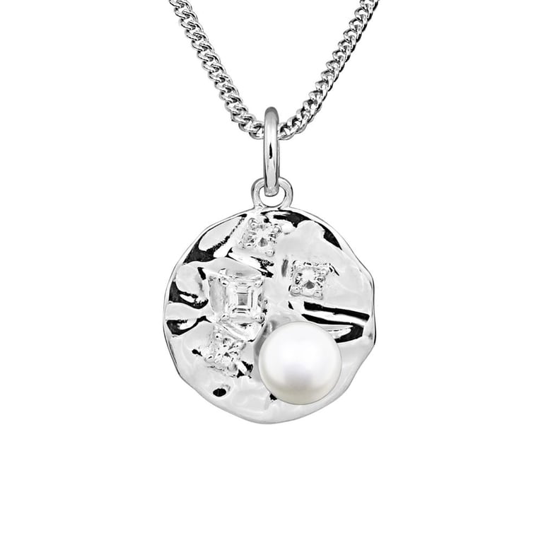 • Silberanhänger mit echten Perlen und weißen Topasen
