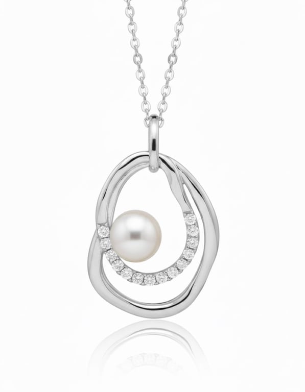 • silberner Anhänger mit eine Perle und weißem Topas