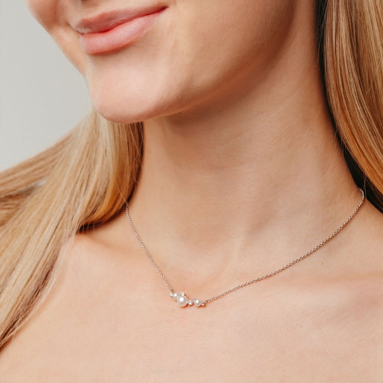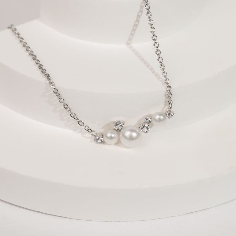 • die Halskette mit Perlen und weißen Topasen ist ein Ausdruck zeitloser Eleganz