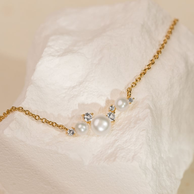 • der zarte Glanz der Perle wird durch funkelnde Steine ergänzt, die dem Schmuckstück einen raffinierten Touch verleihen