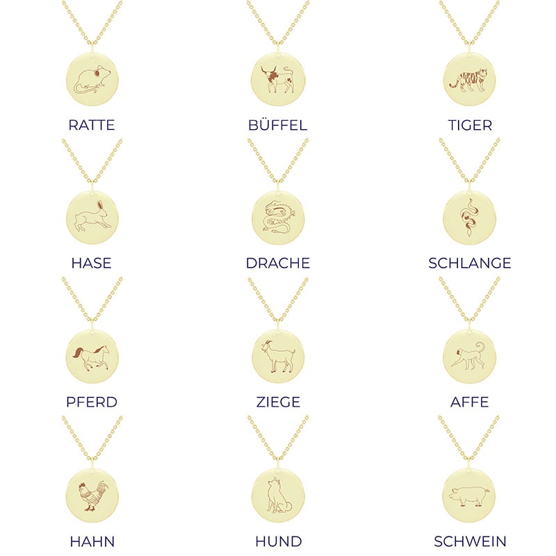 • silberner minimalistischer Anhänger mit dem Motiv des chinesischen Tierkreises
