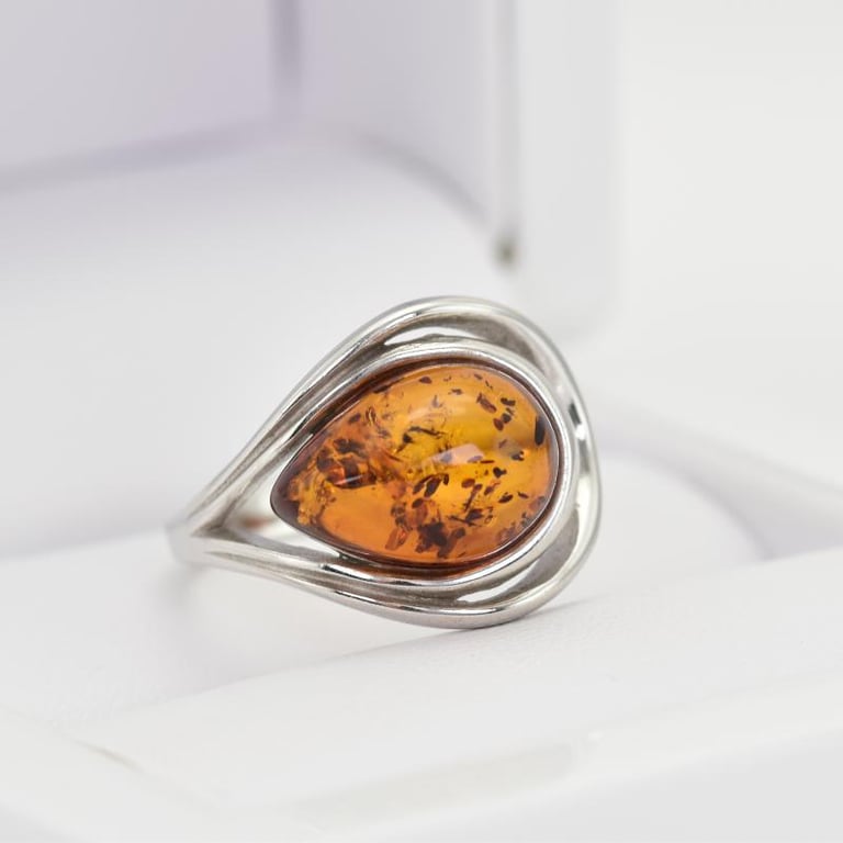 Wunderschöne Bernstein Träne in Silberring Ciana