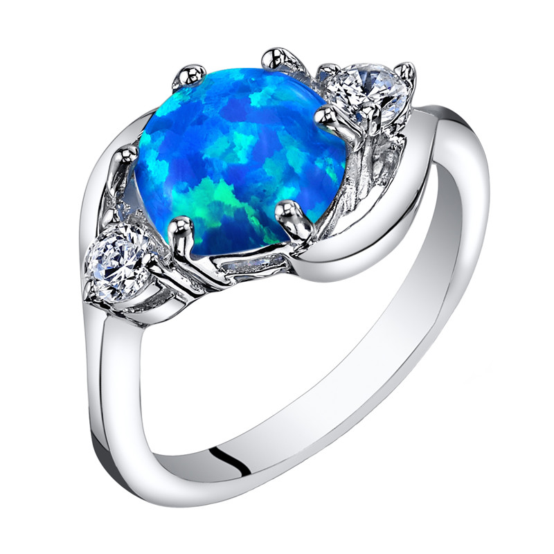 • ein romantischer Silberring mit blauem Opal und Zirkonia