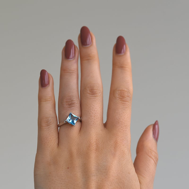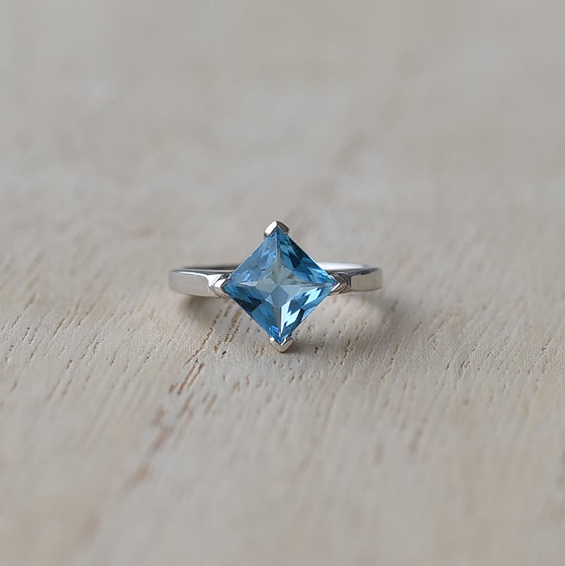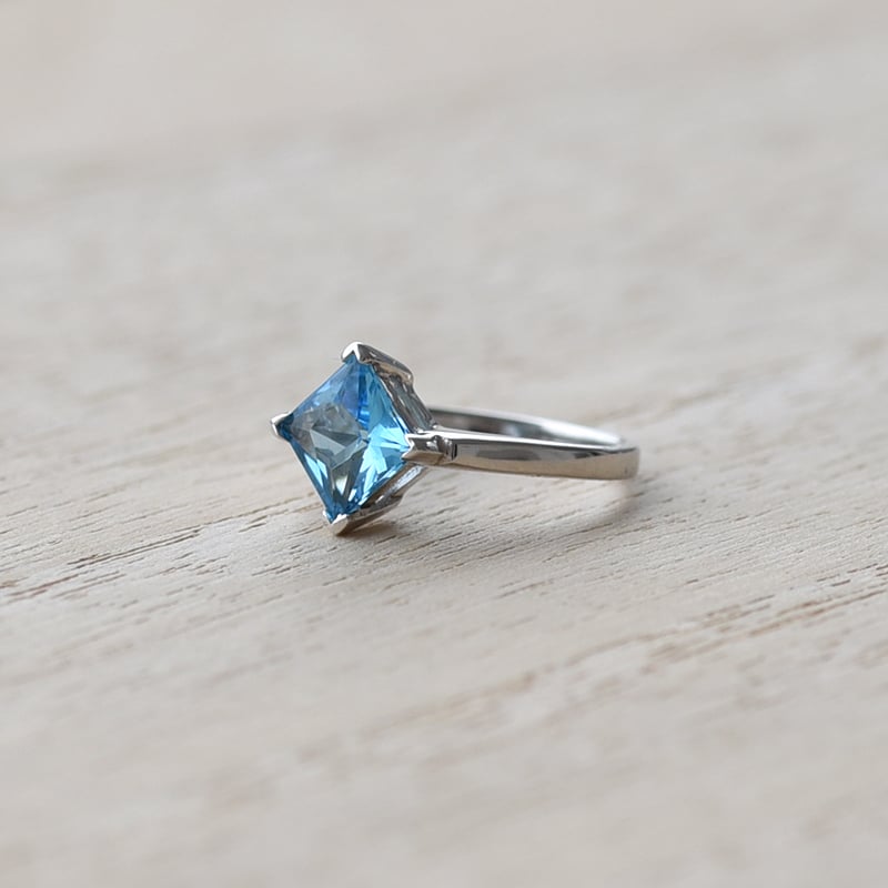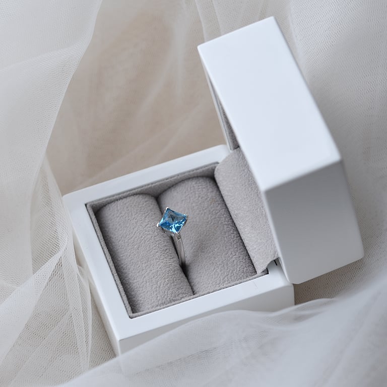 • die quadratische Form des Topas in zartem Schweizer Blau ist sehr elegant