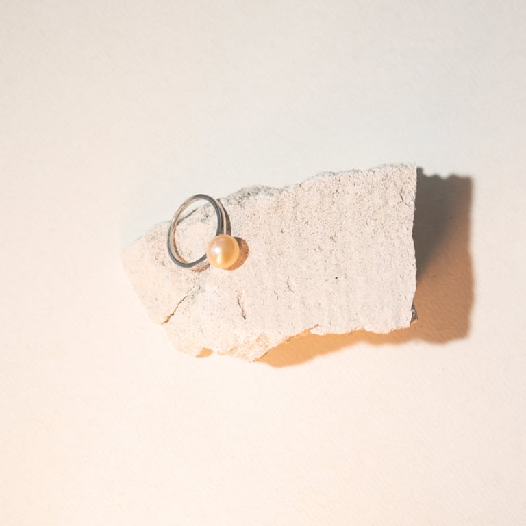 Silberner Ring mit einer pfirsichfarbenen Perle Rivka