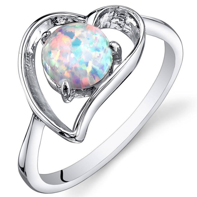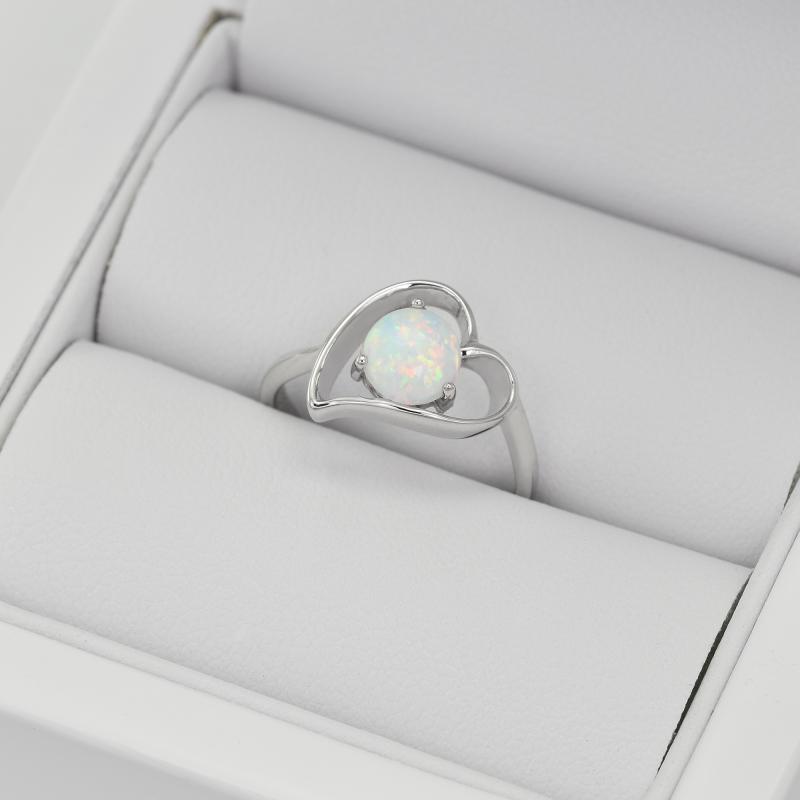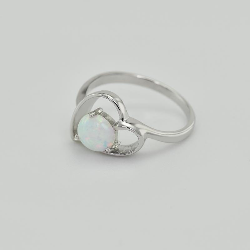 • zarter silberner Ring in Herzform geschmückt mit weißem Opal mit farbigen Abglänzen