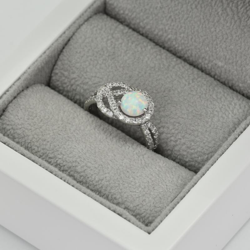 Silberner Ring mit Opal und Zirkonia Rarp