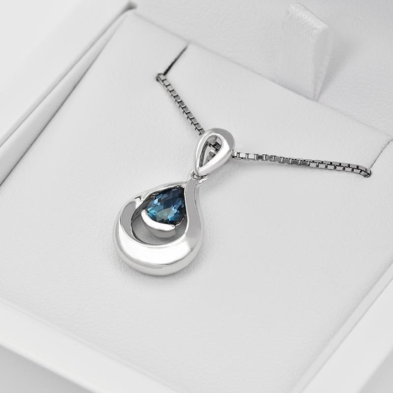 Silberner Tropfen mit Topas in London Blau Aqualine