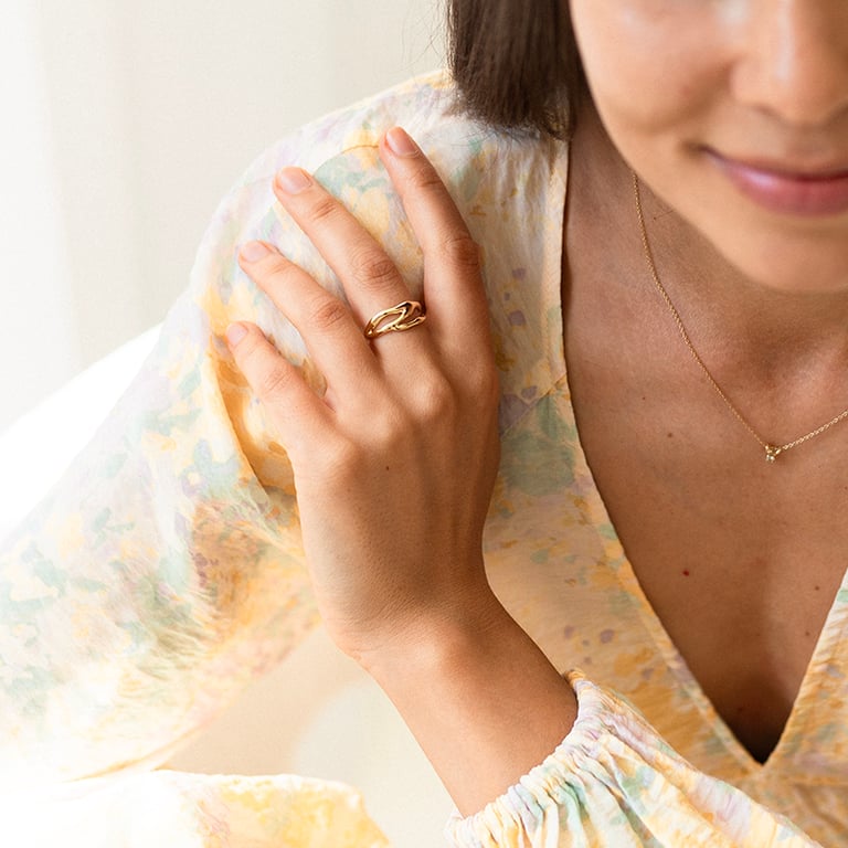• das wellenförmige Design des Schmucks bringt den schönen Glanz des vergoldeten Metalls zur Geltung