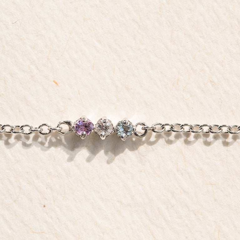 • ein violetter Amethyst, ein weißer Saphir und ein tiefblauer Schweizer Topas bilden zusammen eine perfekte Farbkombination