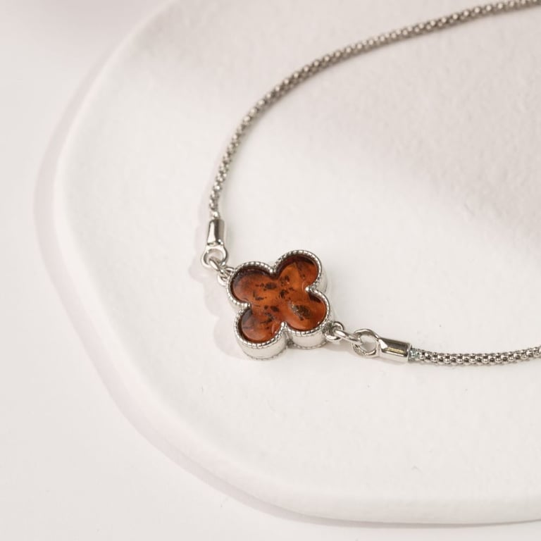 Silbernes Armband mit Bernstein in Form eines vierblättrigen Kleeblatts Kira