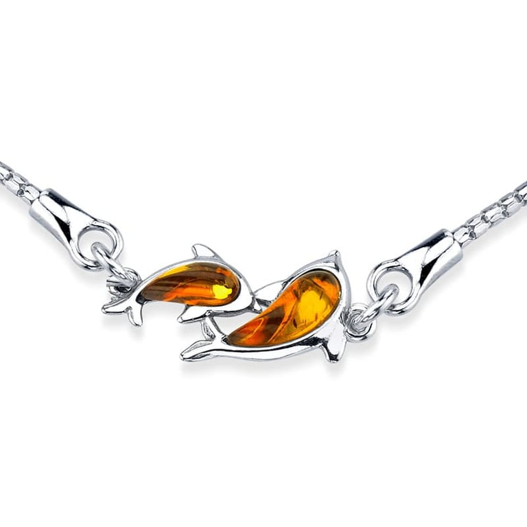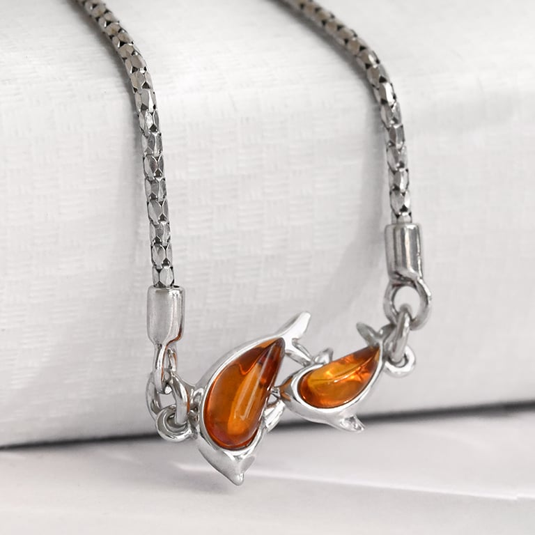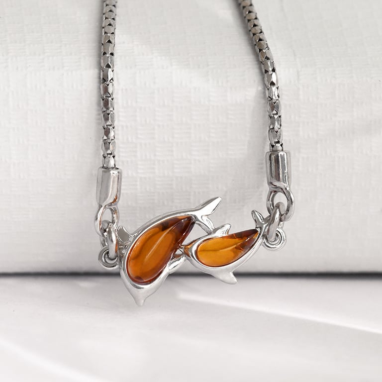 Silbernes Armband mit Bernstein und Delfin Kisha