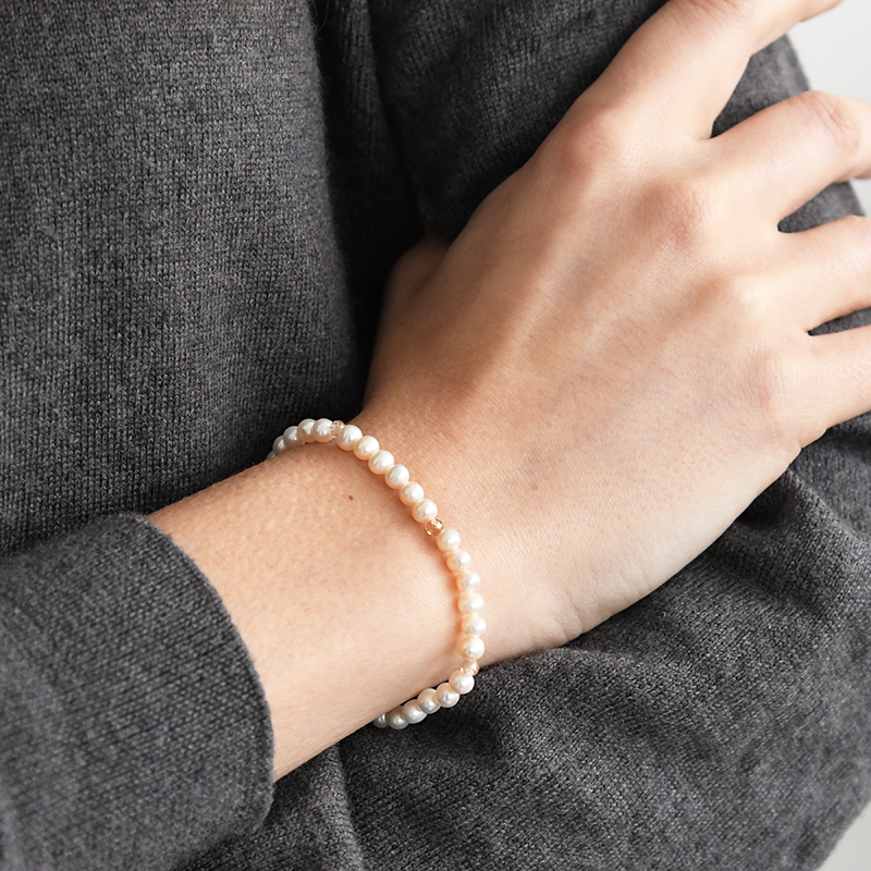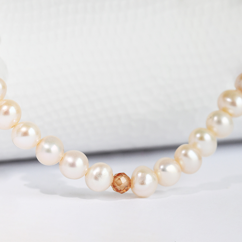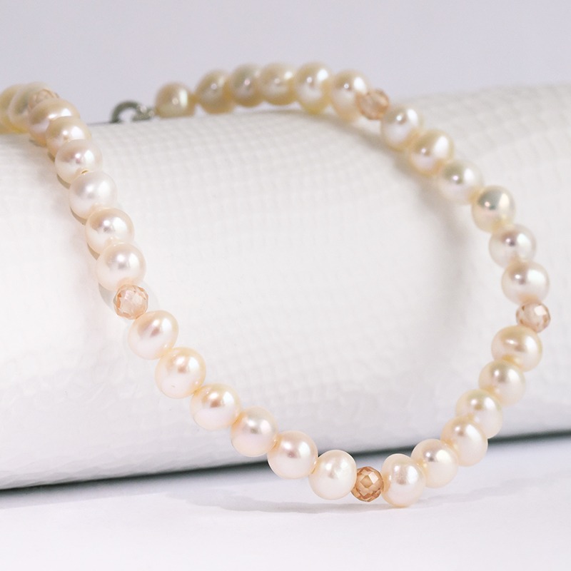 • ein elegantes Armband mit echten weißen Süßwasserperlen