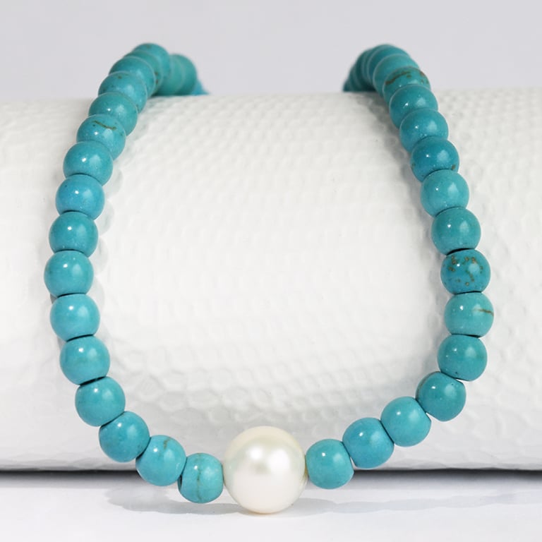 Silbernes Armband mit einer echten Perle und Perlen aus Howlith Moira