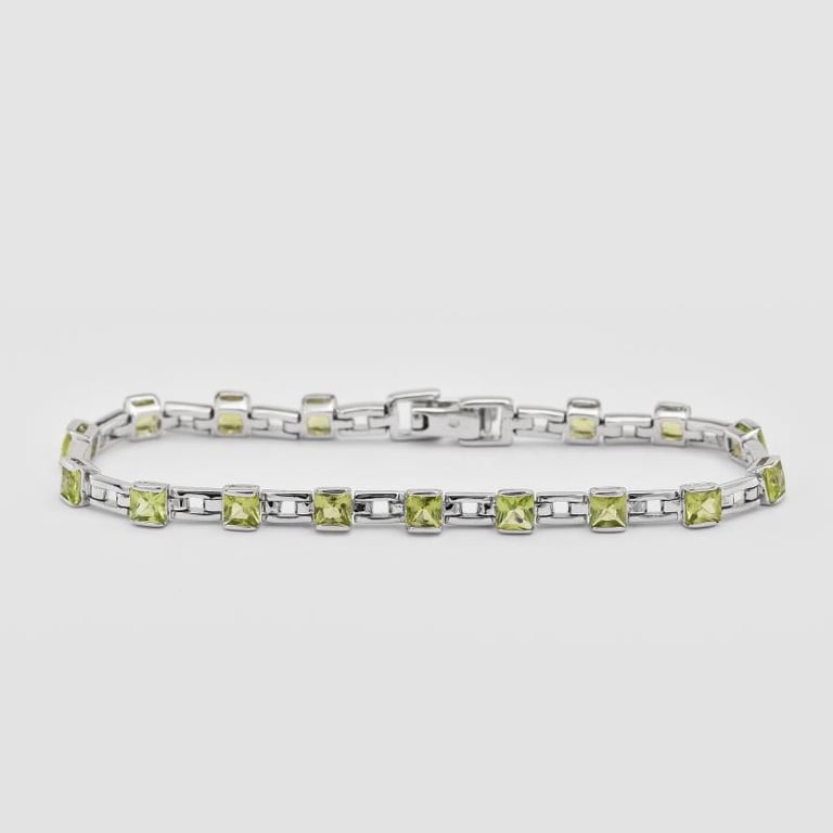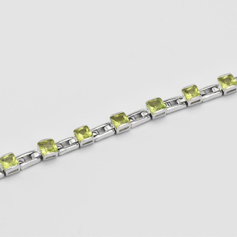 • in diesem sportlichen Silberarmband funkeln 16 leuchtendgrüne Olivine