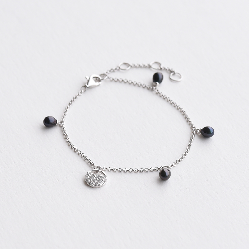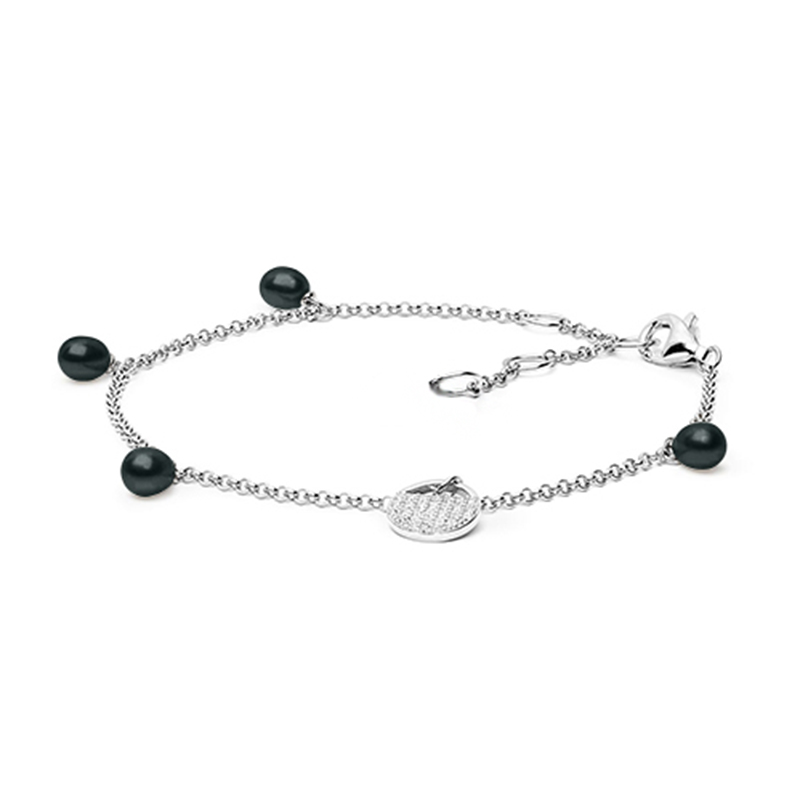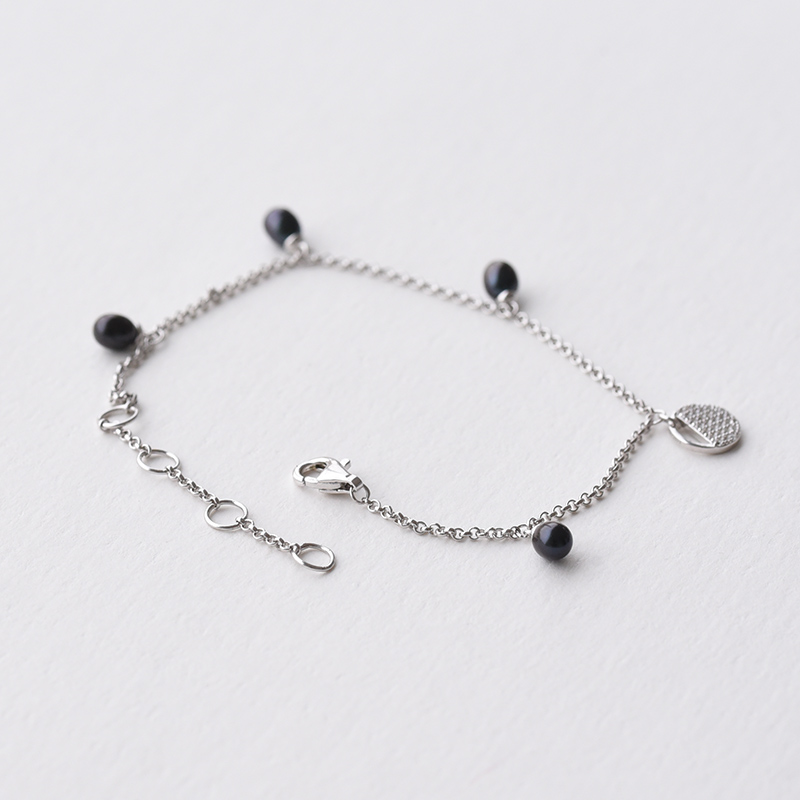 • ein raffiniertes Armband mit Anhängern aus schwarzen Perlen und Zirkonia