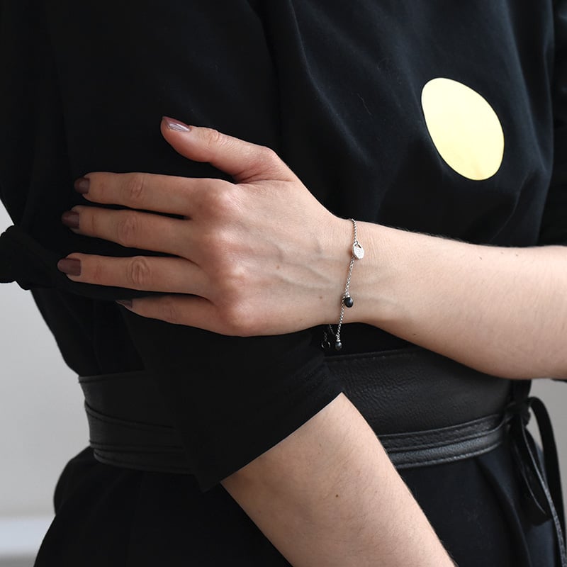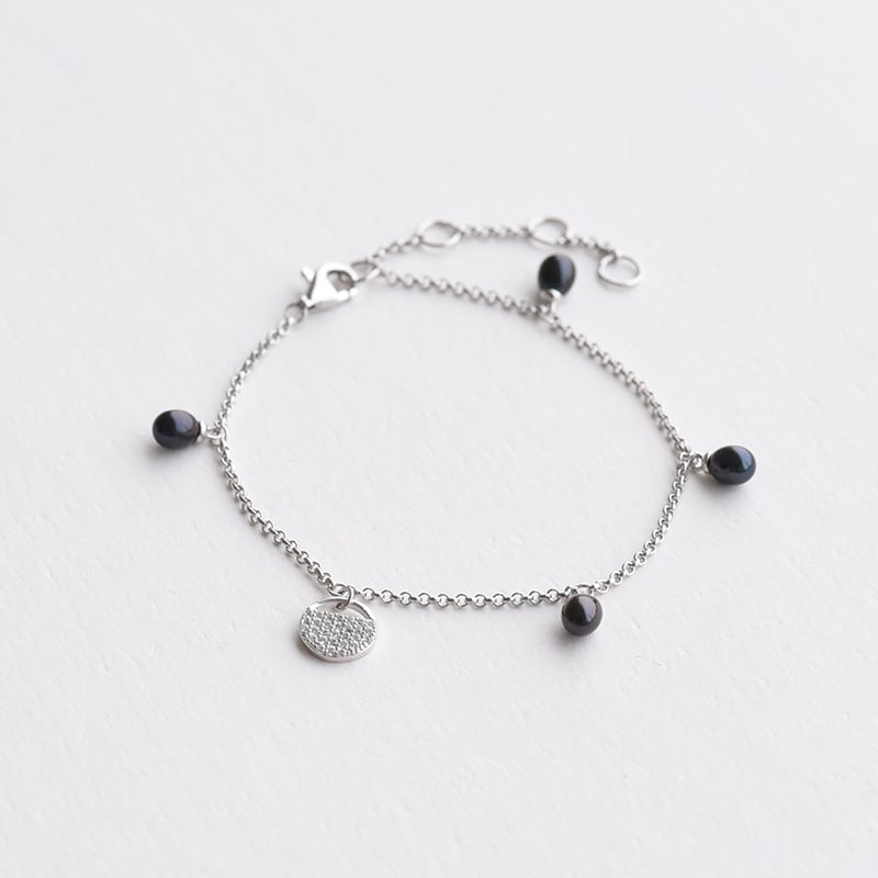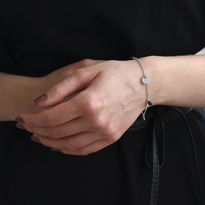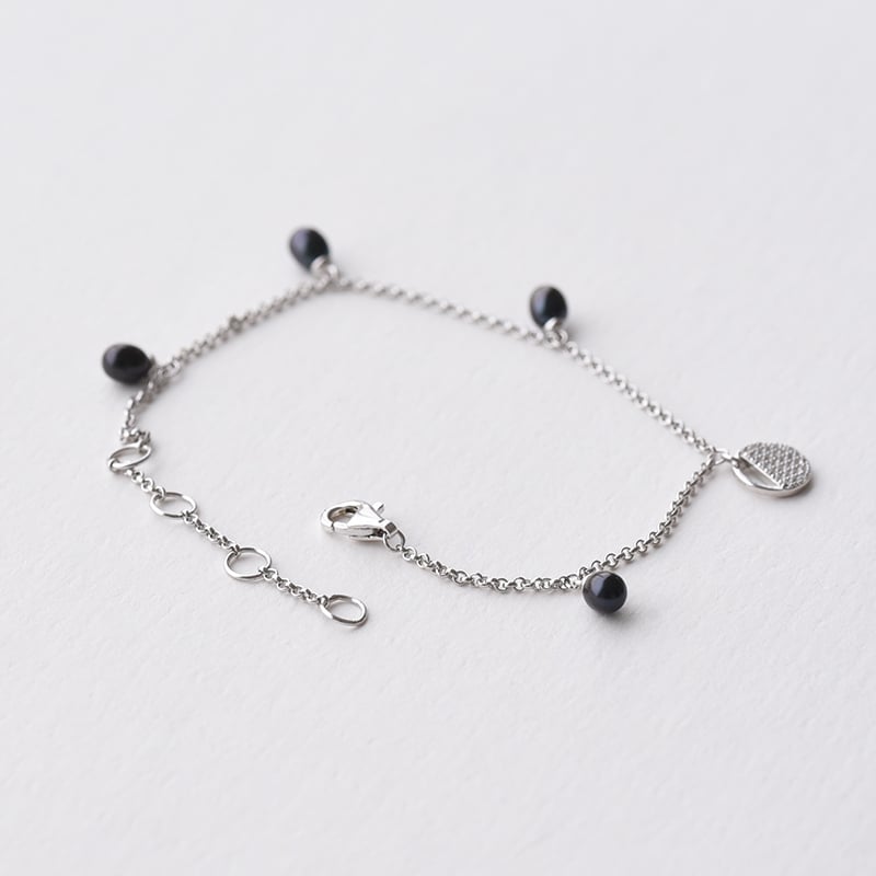 Silbernes Armband mit schwarzen Perlen und Zirkonia Emrys
