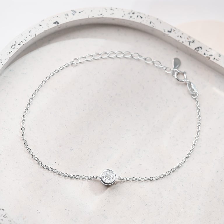 • dieses zierliche Armband aus recyceltem Silber besteht aus einer Kette des Typs Anker und einem funkelnden weißen Topas