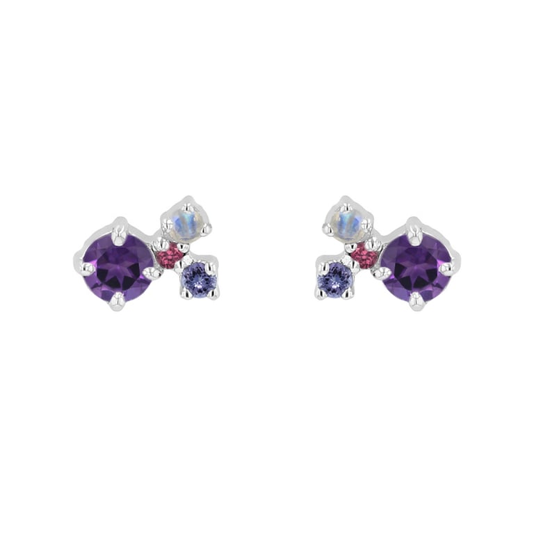 Silberne Cluster Ohrringe mit Amethysten und Edelsteinen Kerrie