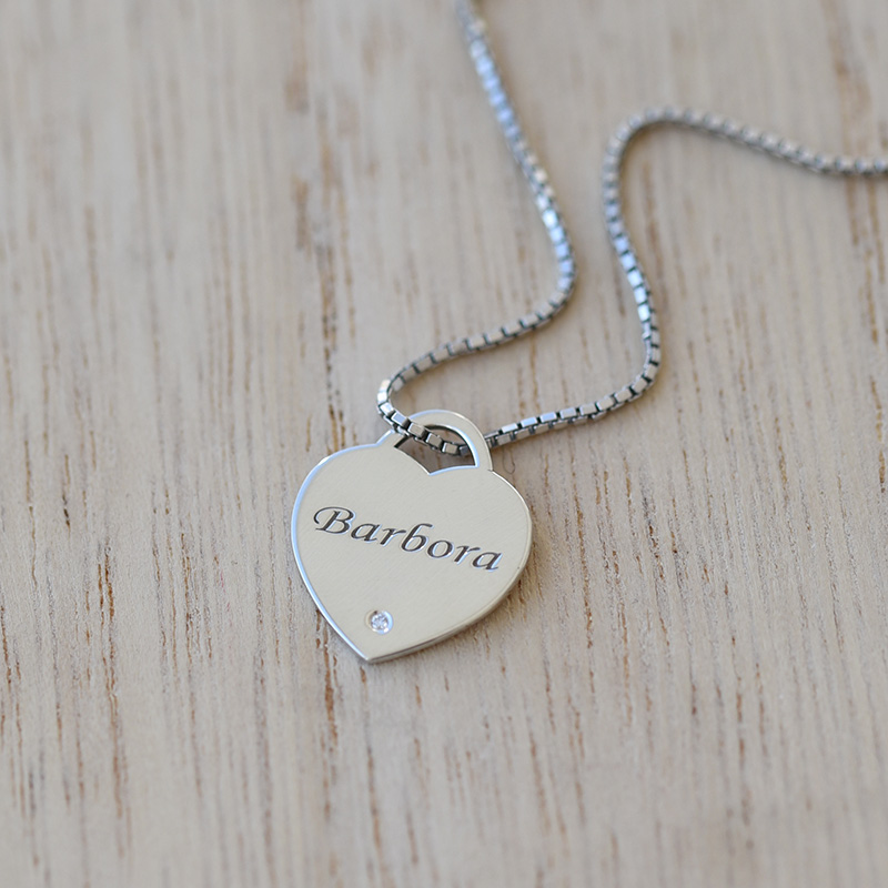 Silbernes Herz mit Diamant und Gravur Ihrer Wahl Albi