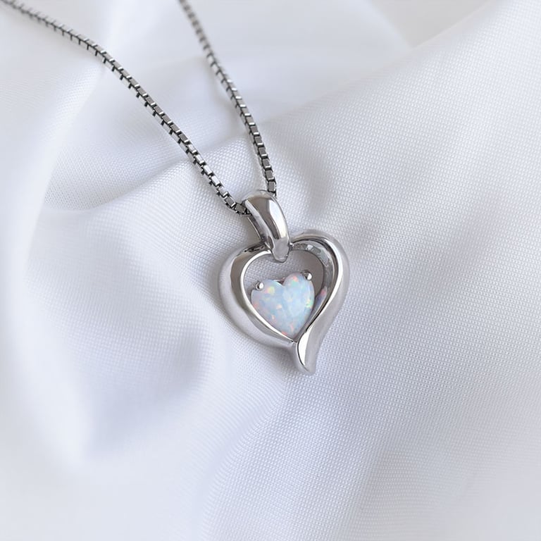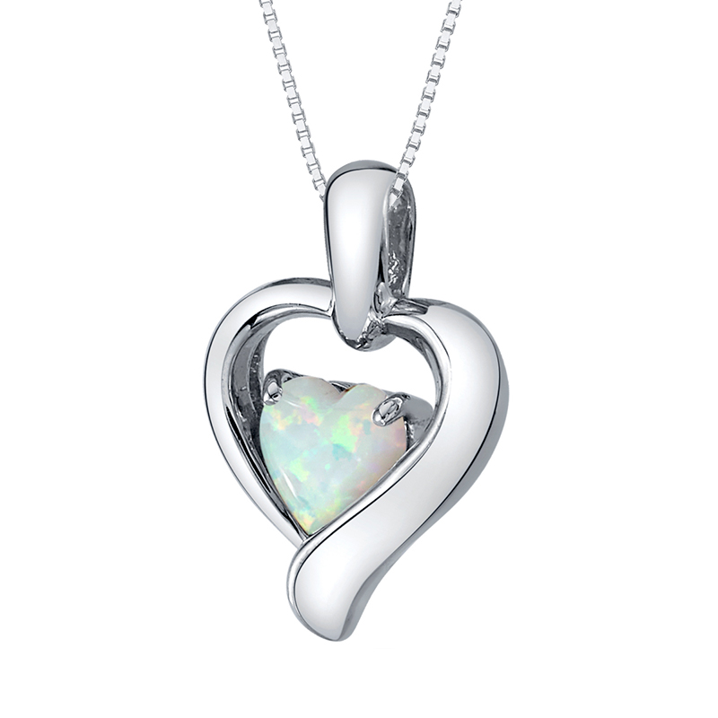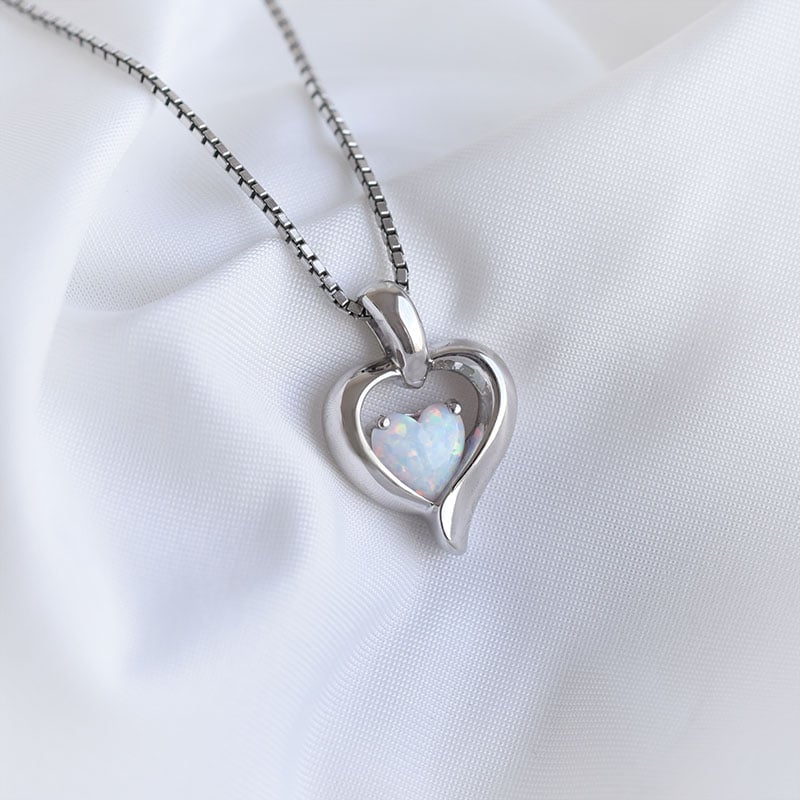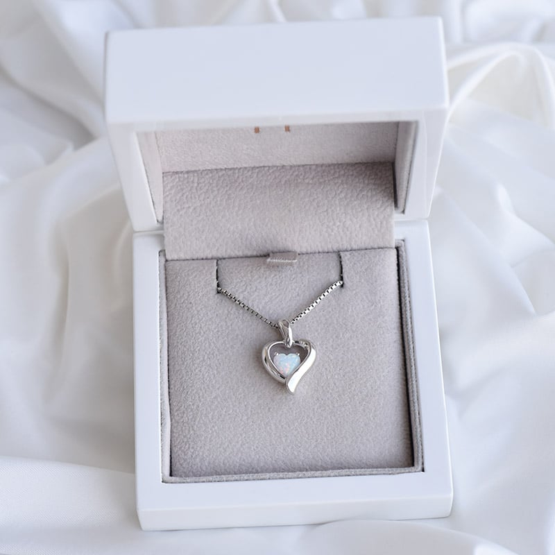 • der weiße Opal in Herzform bezaubert durch sein Schillern in allen Regenbogenfarben