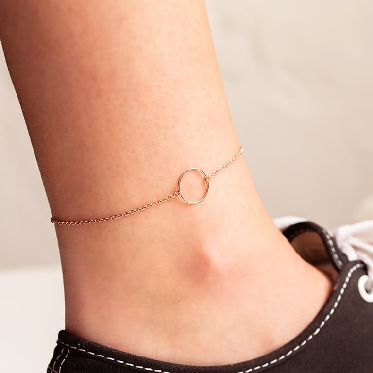 • trendiger minimalistischer Beinschmuck mit dem beliebten kreisförmigen Karmasymbol