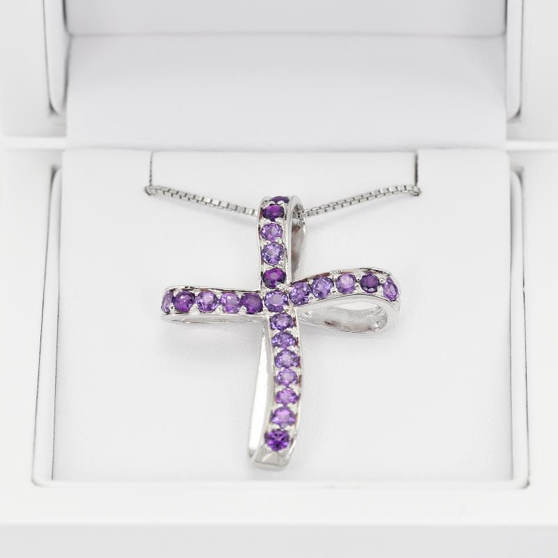 • dieser Silberanhänger ist als stilisiertes Kreuz gestaltet und mit Amethysten in einem zarten Violett besetzt