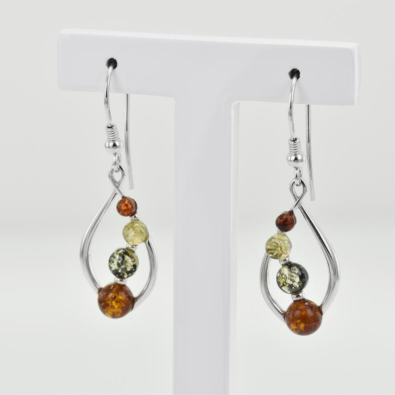 • fünf verschiedenfarbige Bernstein-Cabochons im Armband und vier in den Ohrringen sind hier der Hingucker