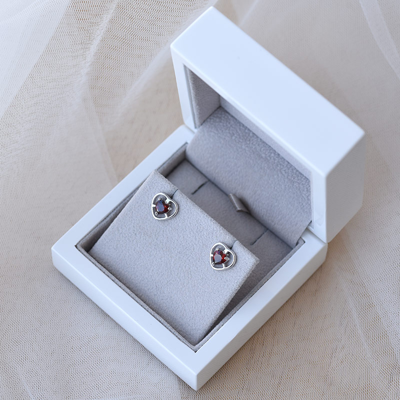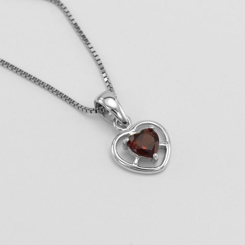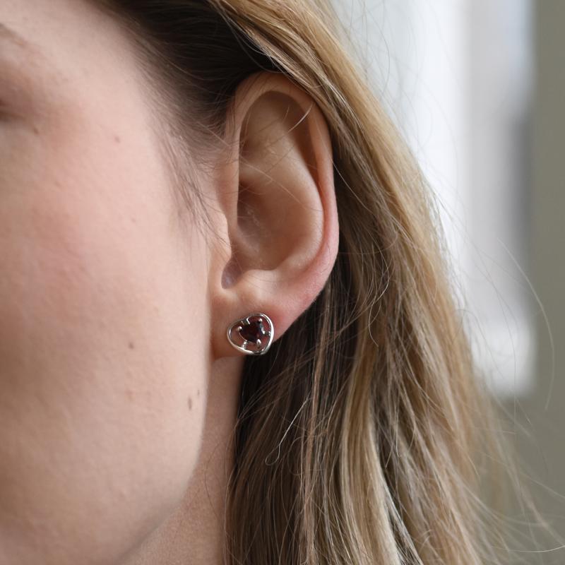 • rote herzförmige Granaten sind in ein modern interpretiertes Herz gefasst