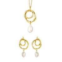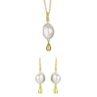 • die zarte Halskette und das Armband sind mit natürlichen Perlen und kleinen Goldkugeln verziert