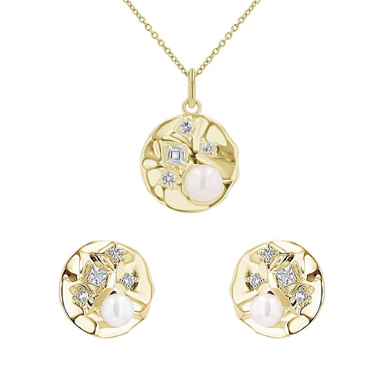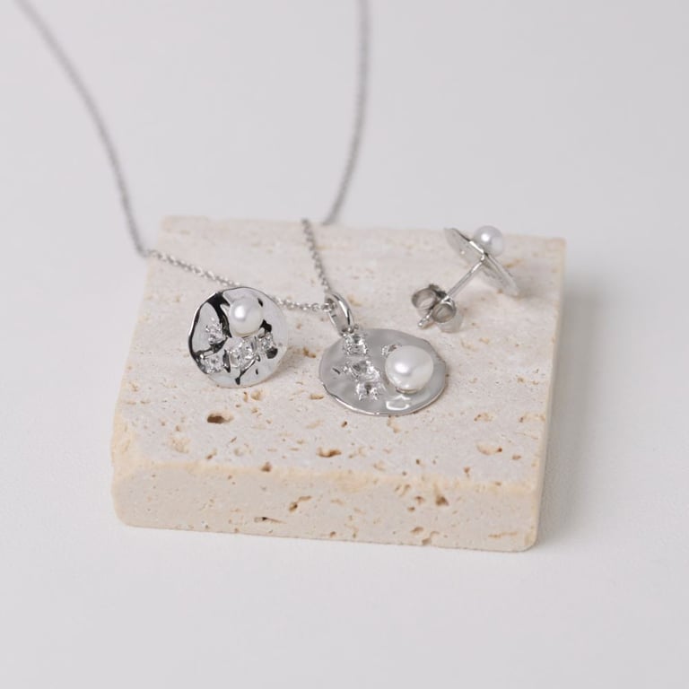 Silbernes Schmuckset mit Perlen und weißen Topasen Darleen