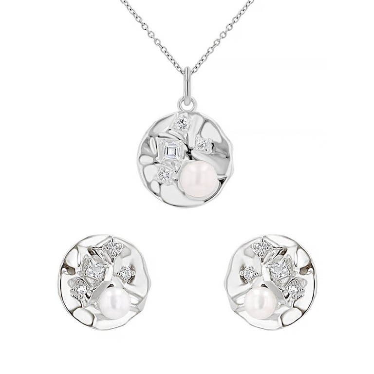 • ein Set aus Silberschmuck mit Perlen und weißen Topasen
