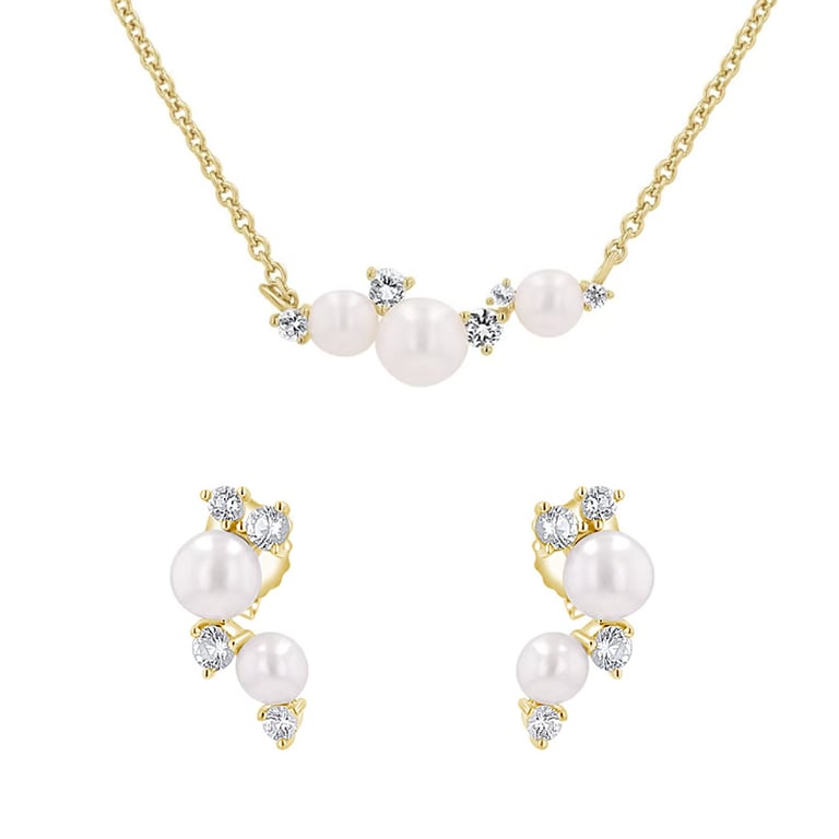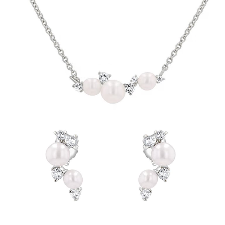 Silbernes Schmuckset mit Perlen und weißen Topasen Perlie