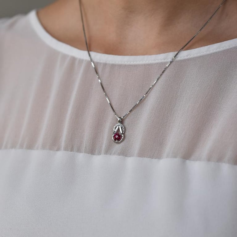 • rosafarbene Rubine in luxuriösem tropfenförmigen Silber gefasst, ergänzt durch funkelnde Zirkonia