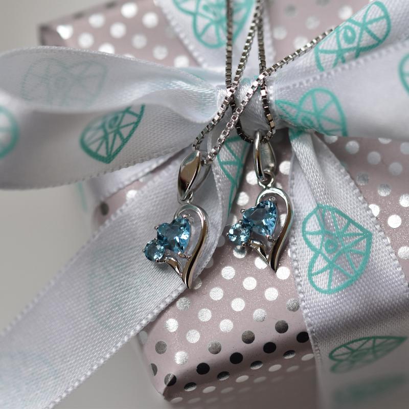 • sowohl im Anhänger als auch in den Ohrsteckern ruhen die Topase in stilisierten Herzen