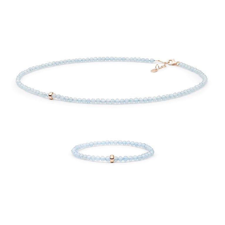 • ein effektvolles Set aus Kette und Armband mit himmelblauen natürlichen Aquamarinen