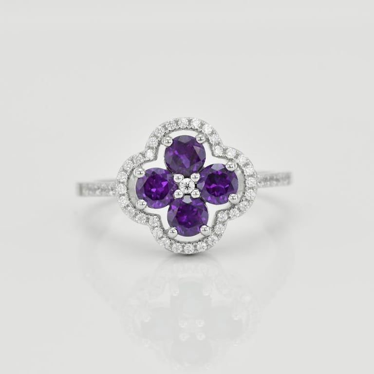 • dieser Silberring mit Amethysten erinnert an eine stilisierte Blütenform und funkelt bei jeder Bewegung