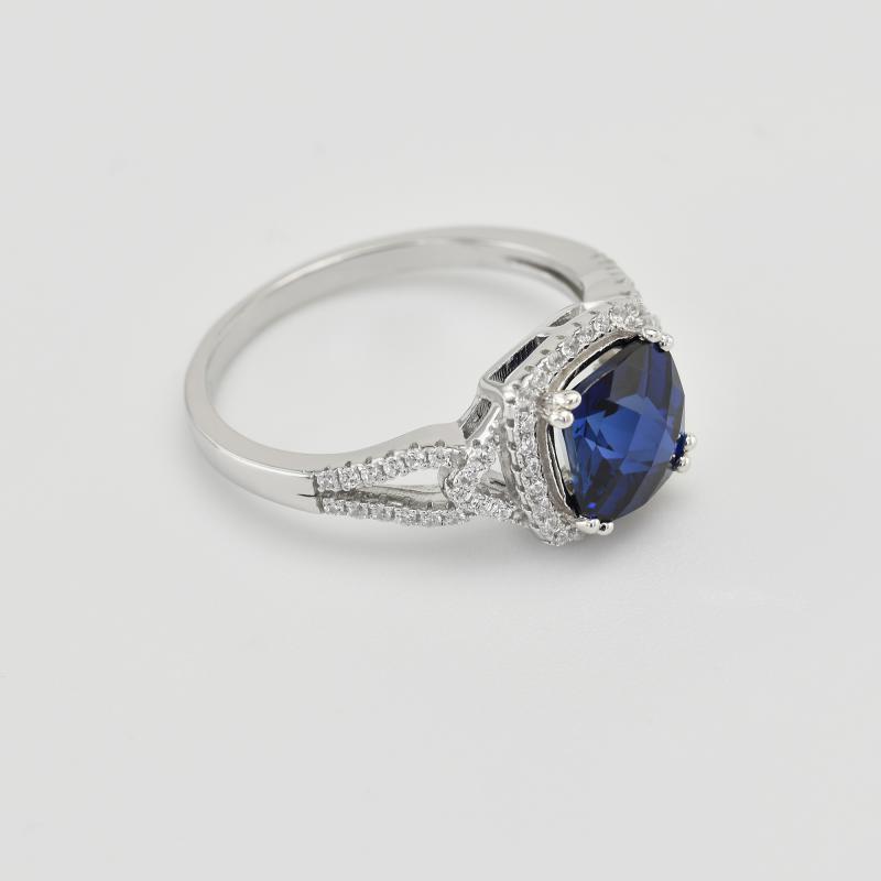 Silberring mit Kissen-Saphir und Zirkonia Delly