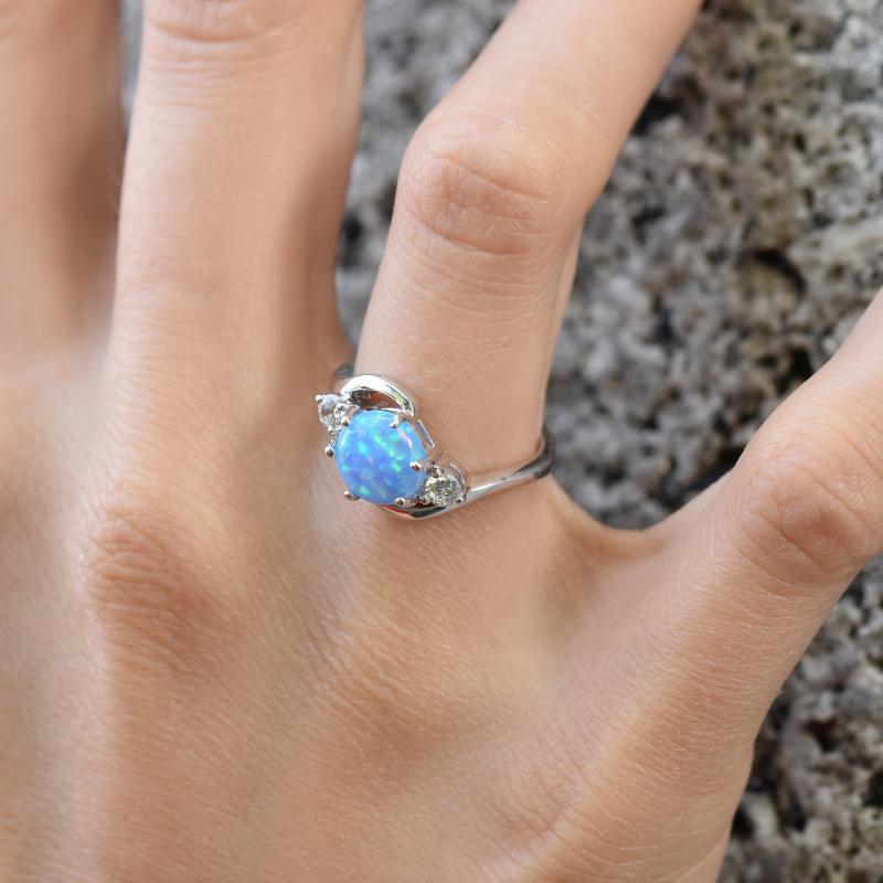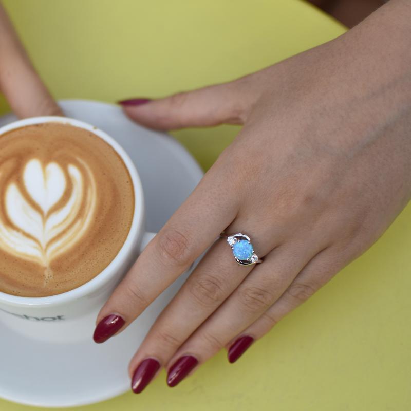 Silberner Ring mit blauem Opal und Zirkonia Jimena