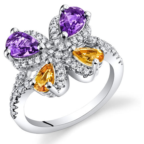 • Silberring mit Amethysten und Citrinen in Schmetterlingform