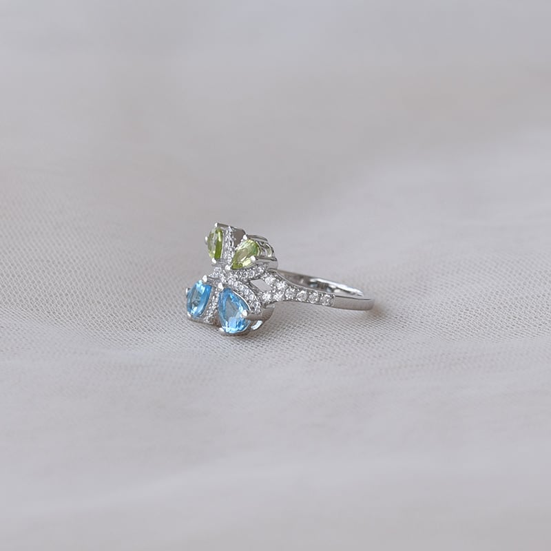 Silberring mit Schmetterlings, Olivinen und Topasen Lajes