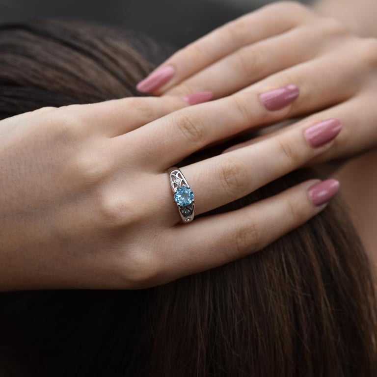 Silberring mit schweizerblauem Topas und Zirkonia Wyla