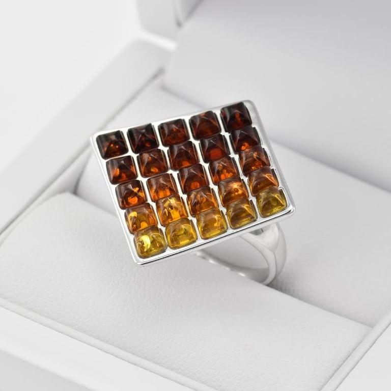 Silberring voller Bernsteine Waffle
