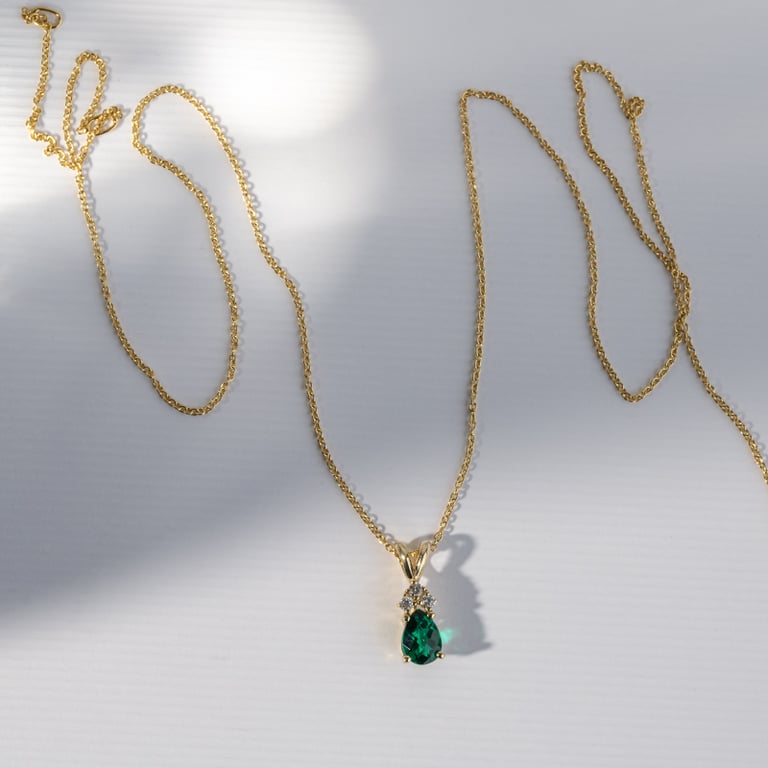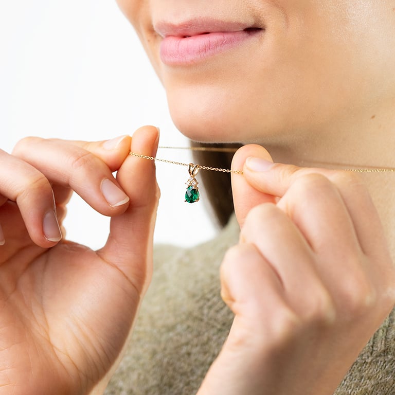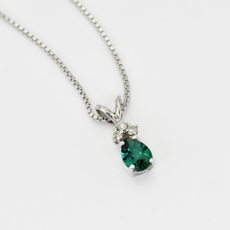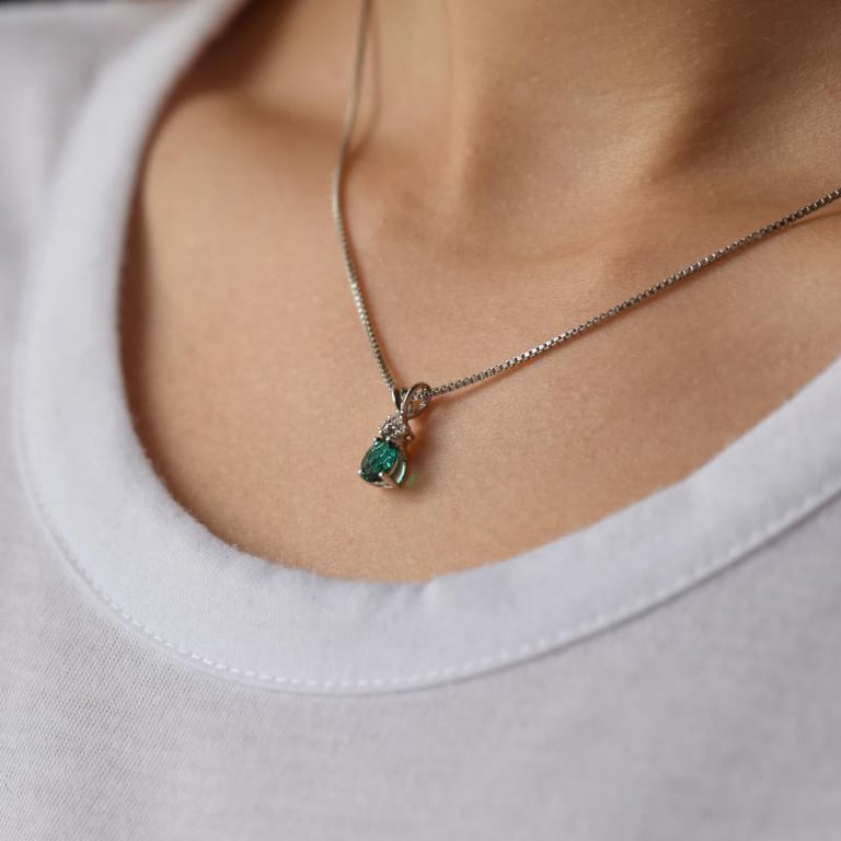 • erforschen Sie die Eleganz und die prunkvolle Art dieses Anhängers mit geschaffenem Smaragd und Diamanten, der aus Ihrem Outfit ein Kunstwerk macht